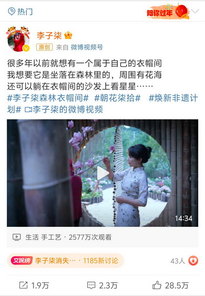 @一玶海岸:#李子柒回归# 带来的热度是现象级的。