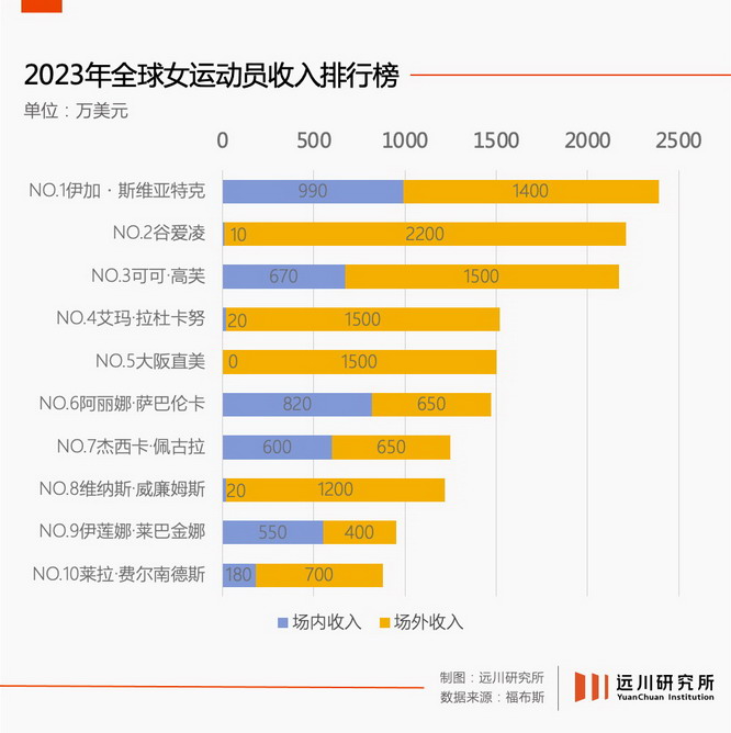 2023 年全球女运动员收入排行榜