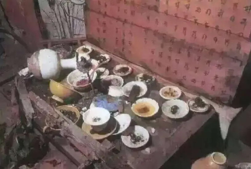 不过墓中并没有棺椁尸骨,也没有贵重随葬品,只有一桌丰盛的酒席。