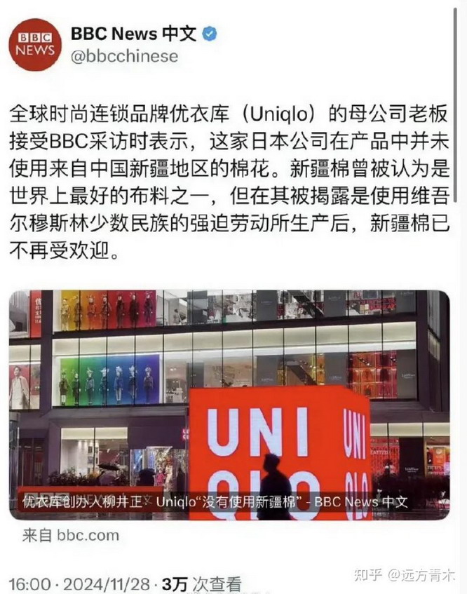 抵制优衣库,BBC说它不用新疆棉