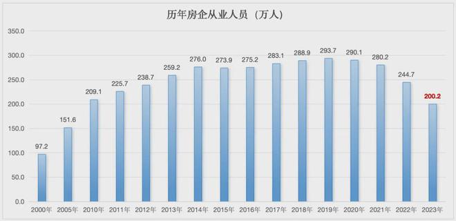 最近偶然看见这样一份数据,是关于历年地产从业人员的人数