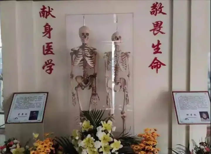 现如今,这对夫妻的骨骼标本被安置在昆明医科大学生命科学馆入口处,外面用玻璃罩着。两架白骨并排“站立”,仿佛生前两人携手同行、从未离去一般。