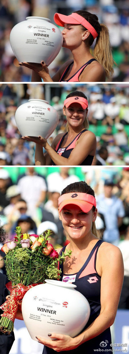 22日在韩国首尔进行的WTA韩国公开赛决赛中,头号种子、波兰选手A-拉德万斯卡以2比1战胜俄罗斯选手帕芙柳琴科娃,获得冠军。 值得一提的是,本届韩国公开赛的奖杯酷似泡菜坛子。