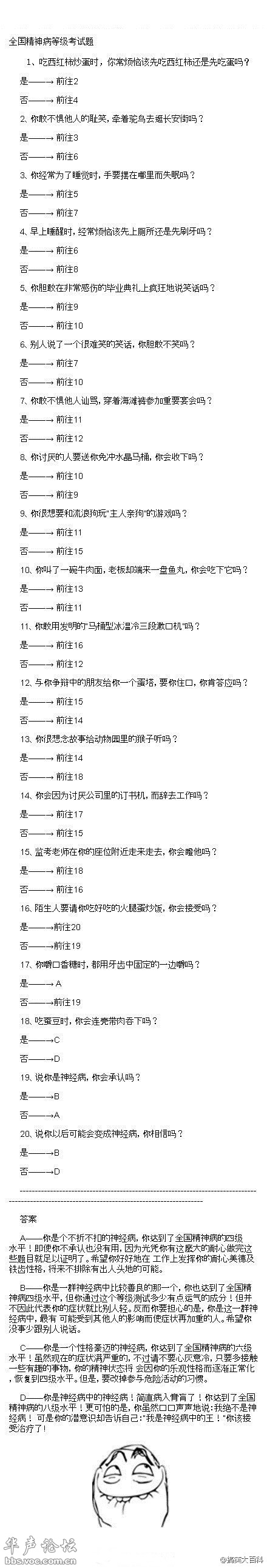 【全国精神病等级考试题】要考精神病的进!