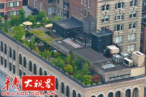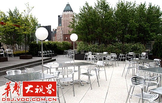 在曼哈顿第十一大道再向北,下城区的第46-47街中间有一栋11层的楼,是一家知名广告公司的办公大楼,楼顶被改造为员工放风、PARTY、喝酒的小花园。这个楼顶花园有近500平方米的空旷面积,植满了数和花草。