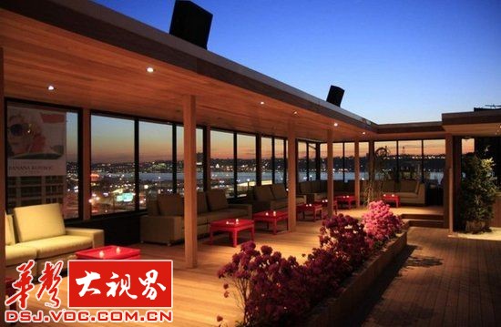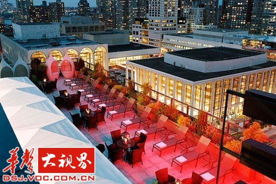 位于纽约著名音乐厅林肯中心附近的四星级豪华酒店Empire Hotel屋顶酒吧,拥有3000尺超大露天和室内活动区域。巨大的红色酒店招牌曾无数次出现在热播美剧《绯闻女孩Gossip Girl》中,12楼屋顶酒吧经常都会举办各种热闹派对。吹着小风,喝着小酒,林肯中心、哥伦布广场等地标美景尽收眼底。