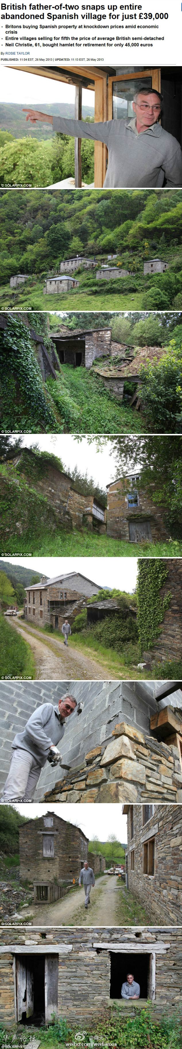 英国每日邮报报道,英国人克里斯蒂以3万9千英镑(36万人民币)的价格买下了一个西班牙村庄。