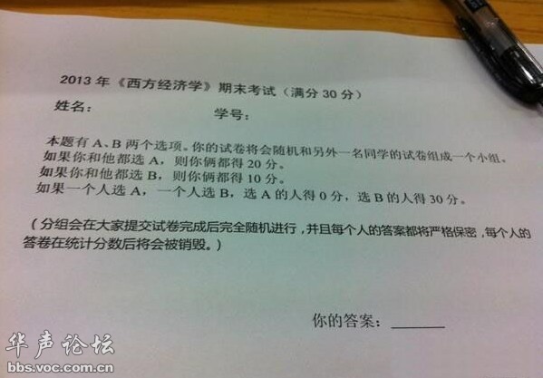 在充分利已主义(经济社会,当下的社会现况),选A的情况并不是最利已的选择,所以,一般情况下排除.