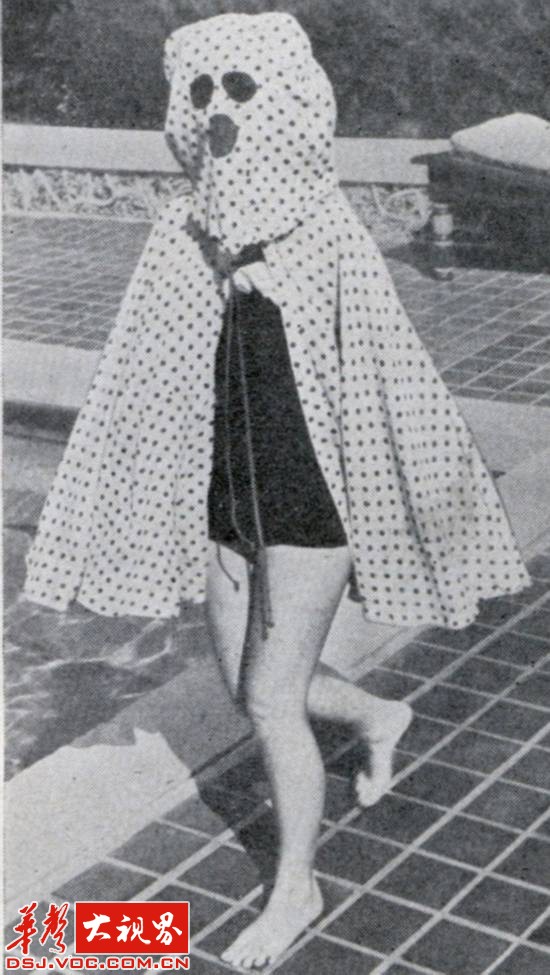 40年代的防晒斗篷,从头到脚全副武装,甚至还配置了内置墨镜。