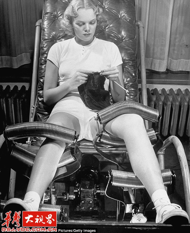 40年代非常流行“减肥沙龙”,坐在一张全是金属滚筒的椅子上便可以进行全身各个部位的瘦身治疗。