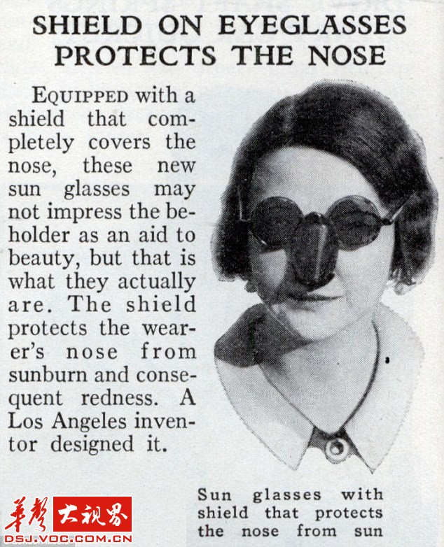 这个“鹰脸墨镜”设计于上世纪30年代,这个突兀的内置鸟嘴可以帮助佩戴者的鼻子防晒。