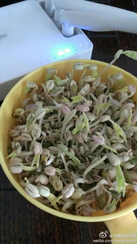 实验是将绿豆放置于塑料碗中,对照组同一个袋子中的绿豆,也是塑料碗,实验组放置于无线路由器30厘米之内,长期开启无线路由器。对照组放置于阳台,相对室内光线更好,用辐射仪检查,辐射读数显示为0。第一天,用水淹没浸泡绿豆20小时,其后每天用水喷淋绿豆上,经过72小时,基本观察的情况为:实验组和对照组的绿豆都正常发芽,基本找不到没有了芽和绿豆。直接目视,实验组比对照组的长势还略好。