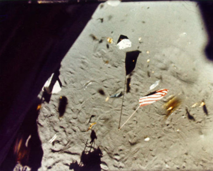 质疑一:星条旗似乎在迎风飘扬,而在没有空气的月球上,这种事情显然是不可能的。即使是造假,美国宇航局一些所谓的科学家也应该更细致一点,让他们的“假”更接近真实。