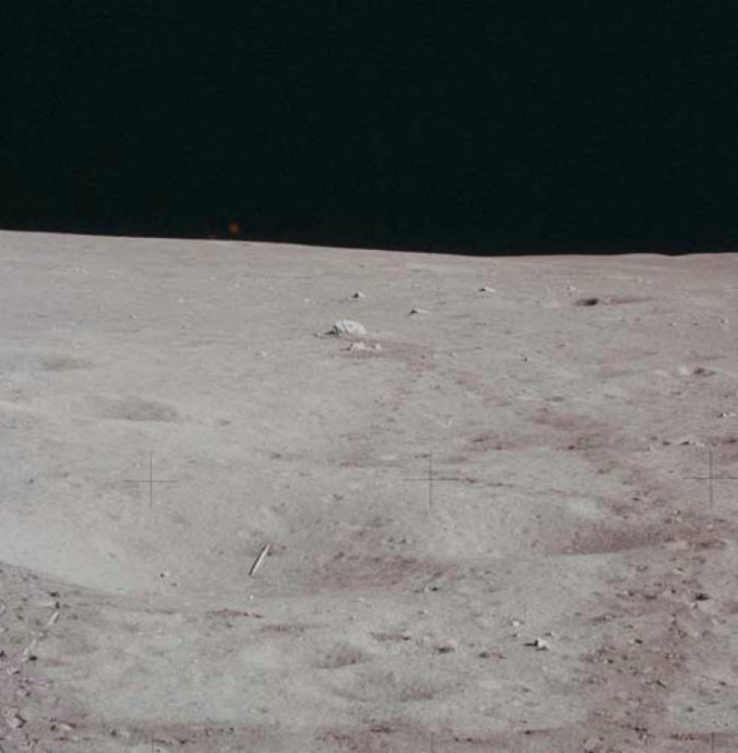 质疑五:在“阿波罗16”号任务中拍摄一张月球岩石照片中,居然出现了字母C。这显然是整个事件造假的一个证据。