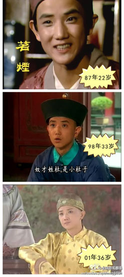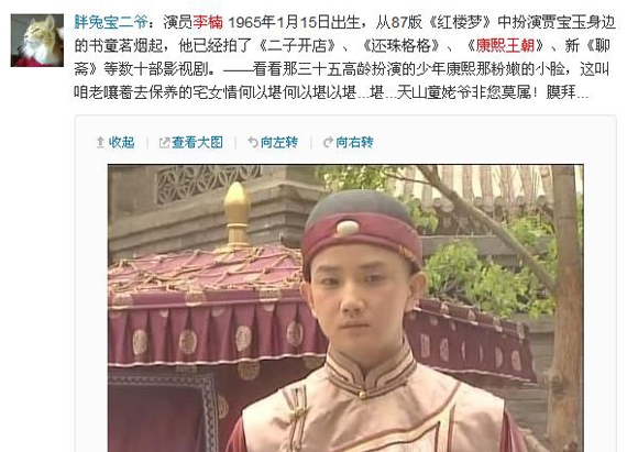 7日晚,微博“萌萌不是马”的突然注意到曾经饰演“少年康熙”、“小桌子”的演员李楠竟是65年出生,这就表示,98年演《还珠格格》小桌子的时候已经33岁了,01年36岁时又演了十几岁的康熙。