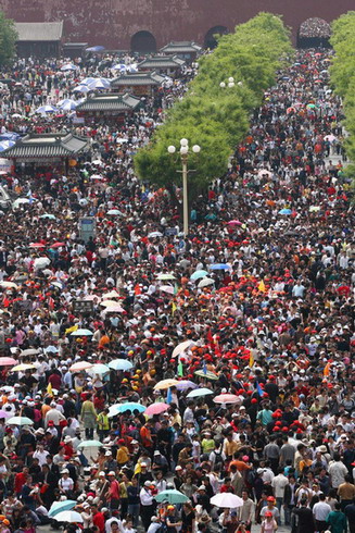 2008年,“五一”三天长假被取消,增加了三个小长假,“十一”就更显得难堪其负,到处人头涌动,成了“黄金粥”。今年更例外,中秋小长假和国庆长假相连,加之又取消了节假日高速公路收费,能不全民总动员、大涌动?