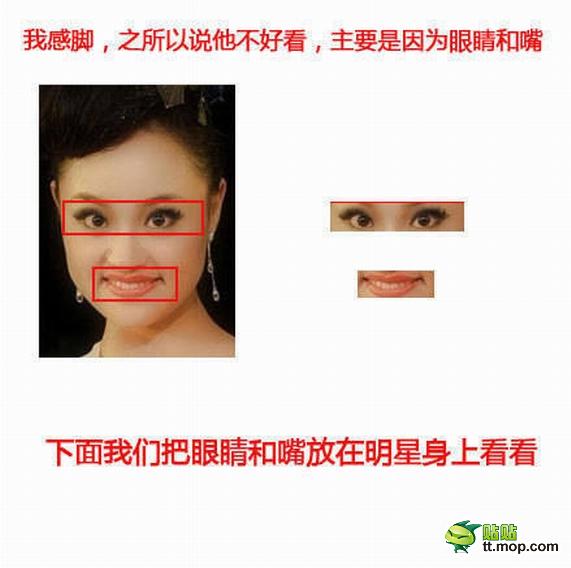 有网友分析,应该是眼睛和嘴的问题,现对比如下