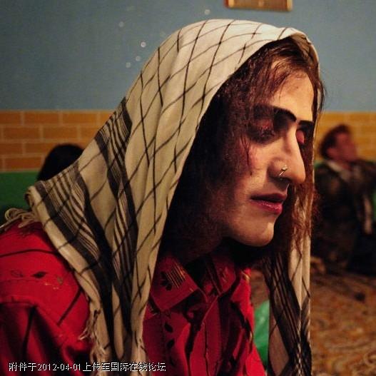 在一个舞会上,一名阿富汗男子骄傲地仰头看着镜头。一般来说,主人会给许多男孩提供大量昂贵的衣服甚至给车,因为这些主人想要以此显示他们的富有以及社会身份。但如果男童们拒绝表演或者没有按照主人说的去办,他们就会受到毒打。