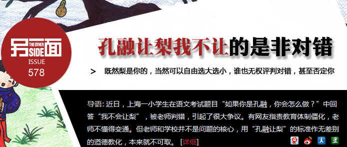 我经常教育我的孩子不要践踏草地,但他一句“大人也这样”,让一切努力白费。教师节让孩子捐钱给自己买礼物的老师,如果能教会孩子“让梨”,那才是中国教育的无限成功。