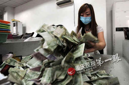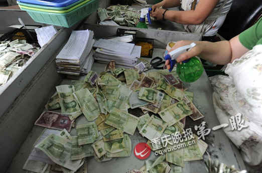 在收银中心呆久了,重庆晚报记者感觉呼吸不顺畅。“哗……”一袋钱倒了出来,葛红习惯性地把头扭到一边,钱堆里散发出一股浓浓霉味。