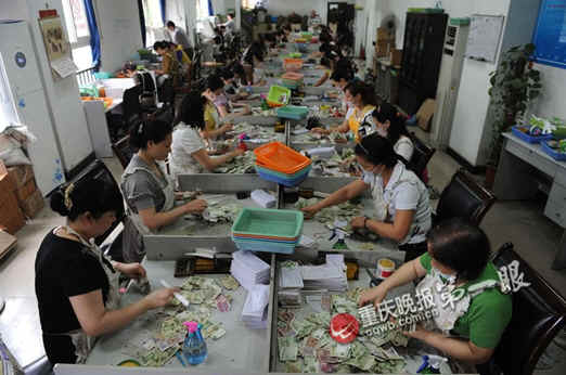 重庆电车公司收银中心有27名点钞女工。每天,她们都在艰苦的环境下劳作。她们当中点钞最快纪录是,1分钟点钞206张。