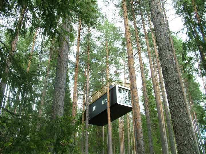 在瑞典北方树林的深处,在接近云端的树梢上,有这样一间房子,它缘起一份友谊,经过天才设计、魔法练就,它完美而纯净。它就是世界上独一无二的树屋酒店。