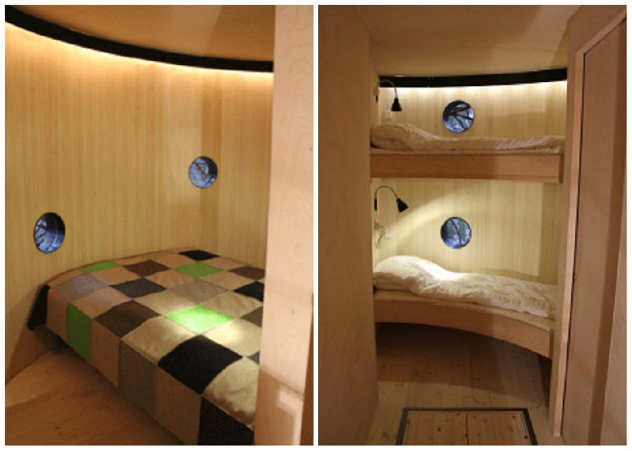 树屋酒店的第一期共有六个主题房间,目前已建成四个,分别命名为鸟巢、镜魔方、机舱、蓝色椎体。余下的两间客房也将于今年年底或明年年初陆续完工。六间主题房间分别由六位设计师完成。每个房间根据主题不同配有特制的家具和灯光,制造不同主题效果。(瑞典旅游局)