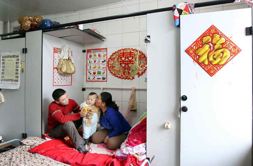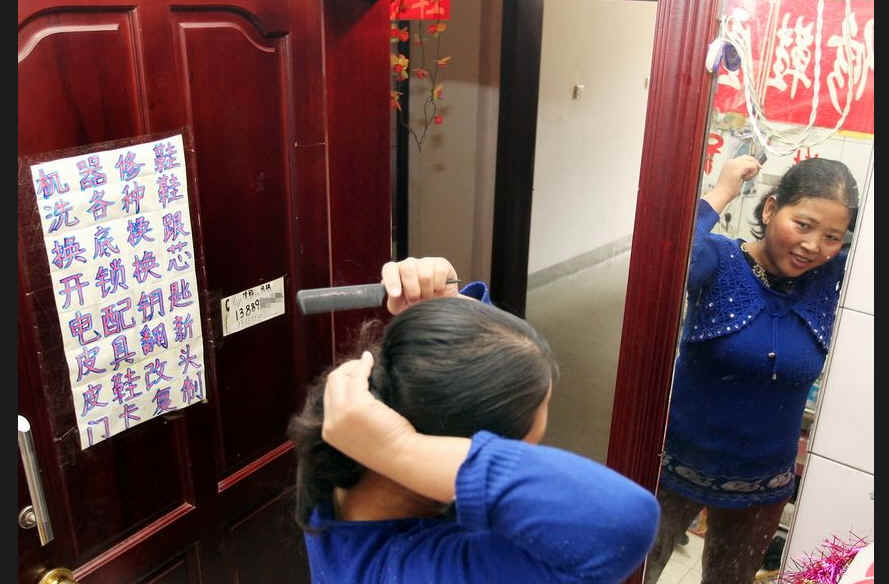 擦好最后一双鞋,晚上7时许,曾令军收拾好工具,准备回到他的小家——一间不足20平方米的卫生间。虽不起眼,但那里有他的妻子和儿子等着他回来。繁华都市里,这个三口之家住在男厕所“改造”而成的家里,依然自足地生活着。
