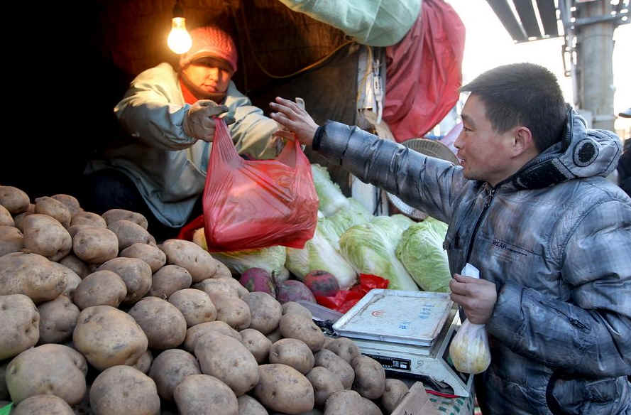 曾令军平时到菜市场买菜,不管多少钱一斤就买一块钱的,最常吃的是白菜、土豆、菠菜。