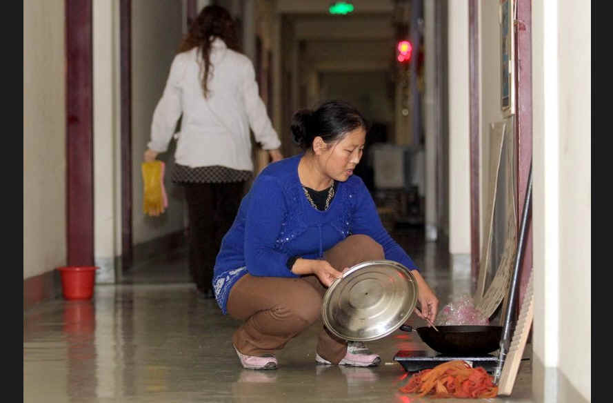 家的门前便是他们的“厨房”,做起饭来不是很方便,但曾令军的妻子王志霞习惯了这样的生活。