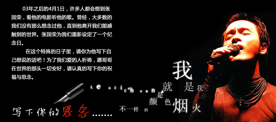 我没记得什么愚人节,我只知道那天是哥哥的日子。明天是哥哥张国荣九年的忌日,哥哥总是带着最优雅的微笑,天使般的面孔,他不喜欢穿袜子喜欢背个小包包到处跑。哥哥,九年了,天国安好?
