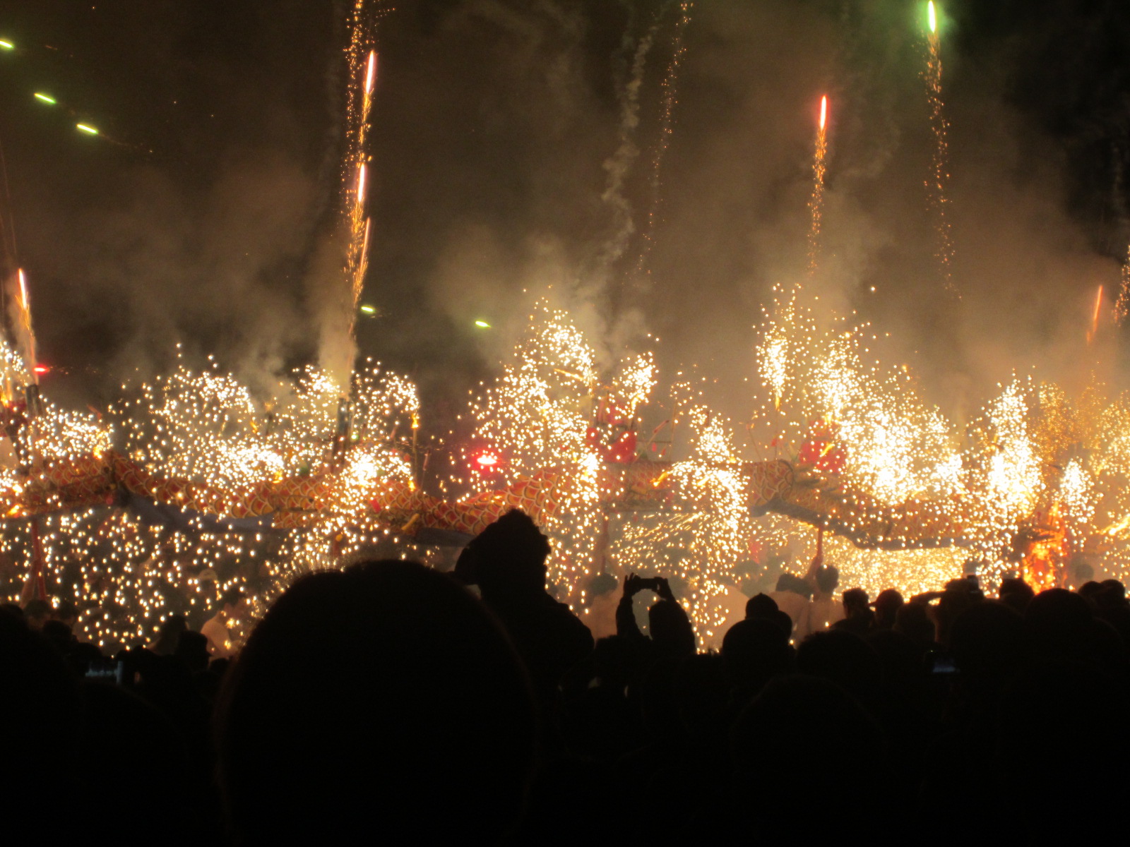 “火”,五行中属“火”,红色。火龙一烧,火生土,土(山脉的物质是土)龙管丁(指男孩),火一点,生土(即生丁),香一点(生火),火生土,土龙神就出来了。人体是是“心、小肠”,开窍于“舌头”