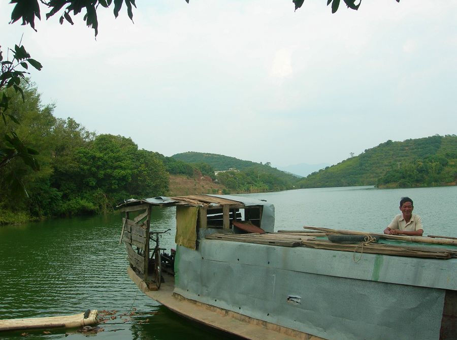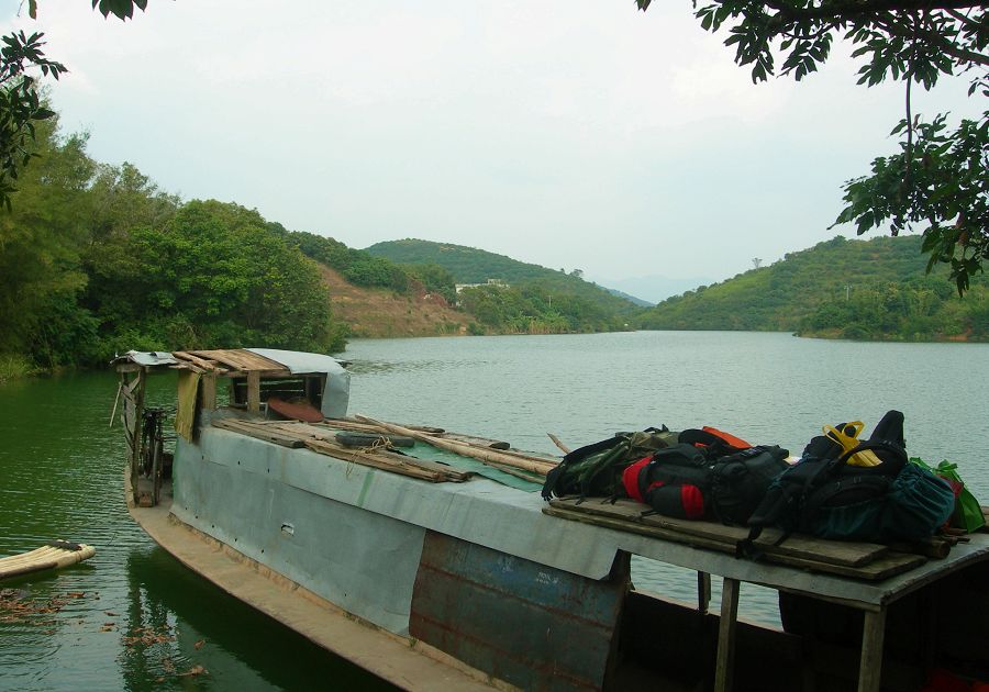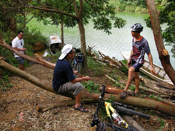 到了水库,准备搭船