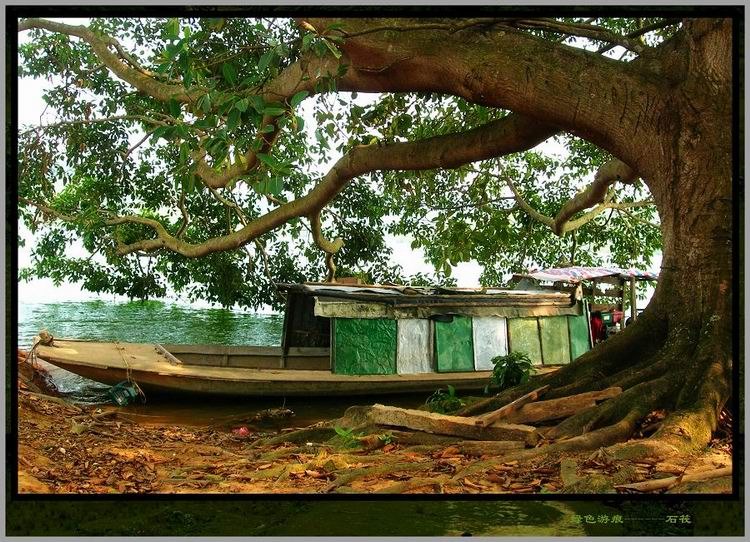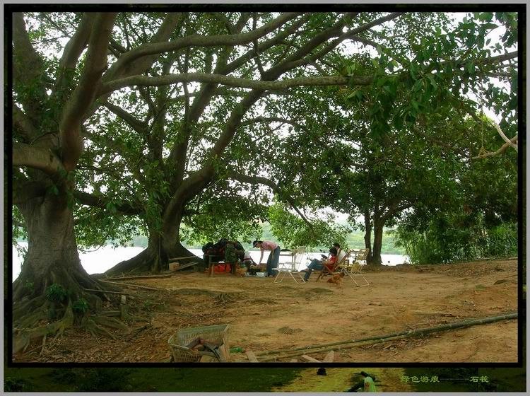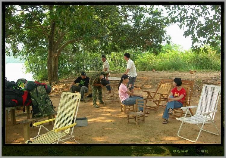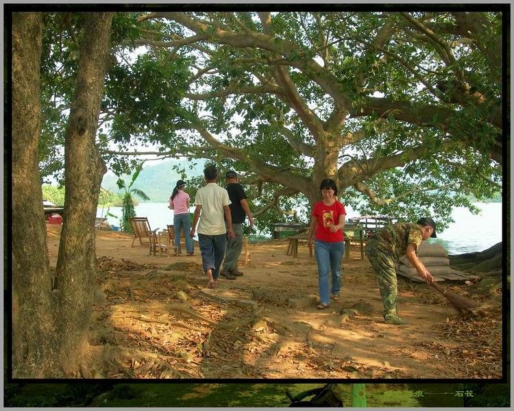 远处碧波上出现两棵大榕树,那就是离岛了。岛上不通电,有间古老的旧屋,那是李叔夫妇的居所。木船缓缓靠岸,两棵榕儿枝叶伸展,在阳光下荫蔽出一大片清凉的空地。我们帮忙卸下行囊,老杨拿把大扫帚三两下把树下的落叶扫净,搬出几张躺椅摆在树下。绿水边,树荫下,躺椅上,凉风习习,惬意得令人叹息。小憩一会,MM到水中畅泳,碧波中多了一尾矫健的美人鱼,我不会游泳,帮忙老梁生火准备烧烤,老杨驾船去接从茂名骑自行车过来的驴友。bq126