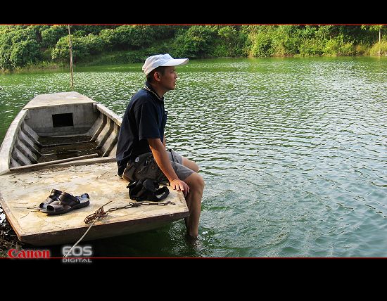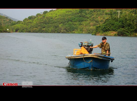 终于周六有幸跟老杨去了趟倾慕已久的离岛。一行人把汽车停在农家门口,顺着小路走下水库去坐船。这天天气晴好又不算很晒,两艘带蓬木船泊在岸边,四周青山绿水,清幽怡人,忍不住深呼吸几口新鲜空气。老杨的私家游艇被人借走了,大家把行囊搬上渔人李叔的木船起行去离岛。我和同行的MM搬两张小木凳坐在船头,身旁有几位型男护航,眼前碧波荡漾,清风扑面,心旷神怡,俗事烦嚣被抛诸身后。同行的MM特意带了个专业相机来拍照,谁知拿出来却发现电池没电了,懊恼得直跺脚。bq146
