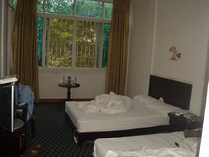 我们在从江赶到榕江已经是晚上7点多了,吃了塔什的羊肉。在榕江找酒店就差不多找了一个小时,因为好的酒店都已经客满,可能是“男人的天堂”的原因吧。bq155 最后,我们居然瞎蒙,到了市委招待所住,也好,便宜、安全,100元标双。