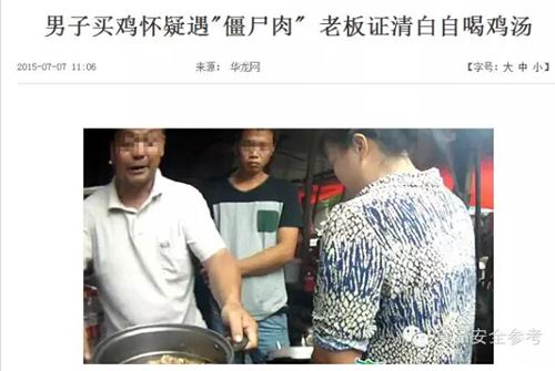 消费者也吓得不轻啊!有媒体报道,某男子买鸡怀疑遇到“僵尸肉”,老板为证清白自己喝下鸡汤。