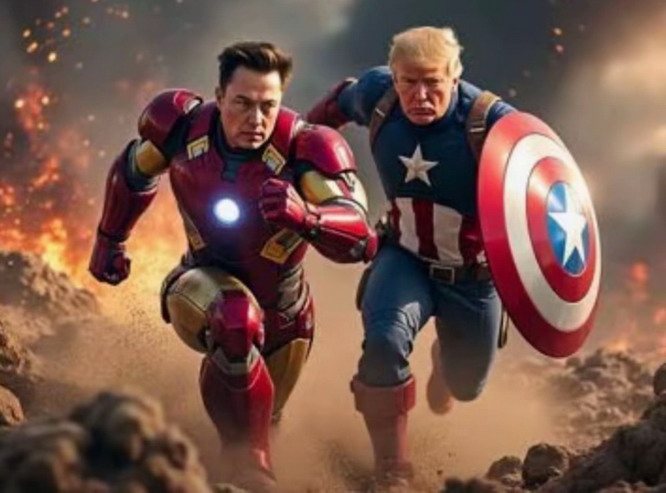 还有人把特朗普.+.马斯克的组合,AI.换脸到美国队长和钢铁侠身上。