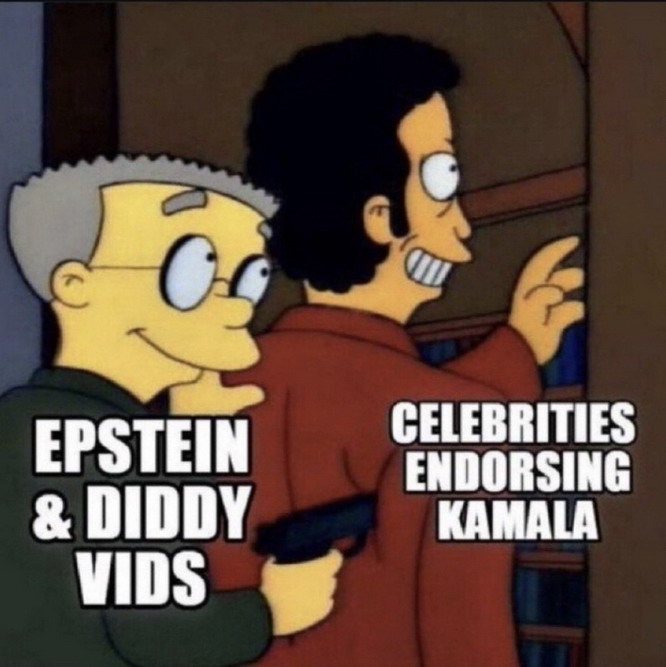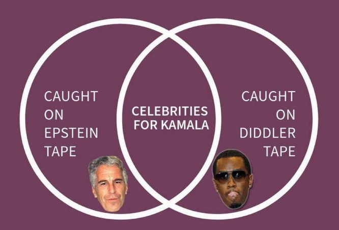 美国网友也制作了不少妙趣横生的.meme.图,核心宗旨就是一句话:爱泼斯坦名单与.Diddy.名单的重合之处,就是所有支持哈里斯的明星。
