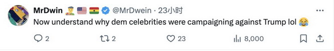 这些年来,只要到了美国大选,大部分好莱坞明星就会在社交平台晒出自己投票支持民主党的照片和视频。而这一次的声势尤为浩大,漫威复仇者联盟再次集结、电影行业的一线演员、流行音乐的一线巨星,集体为哈里斯拉票站台,嗓子都快喊破了。