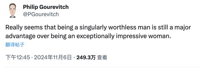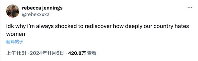 “我必须指出来,如果没有女性选民投票,特朗普压根不可能赢得这么彻底。”
