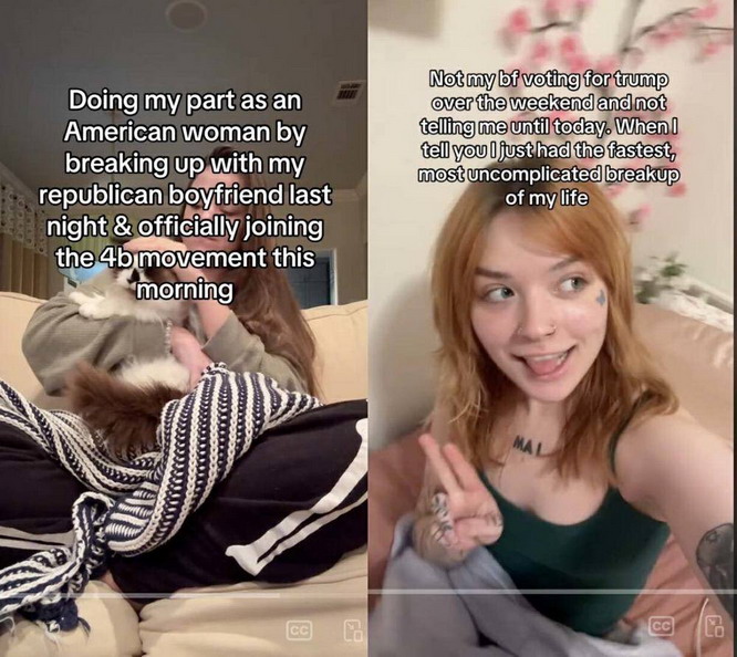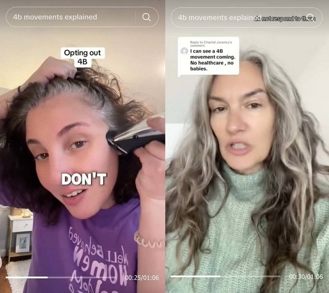 她们开始在.TikTok.上广泛传播.4B.的纲领,号召更多美国女性加入这场运动,以反对特朗普保守男权阵营对女性的物化。