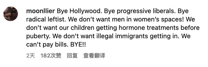 “再见自由派,我们受够了男人进女卫生间,我们不想让孩子接受荷尔蒙治疗,我们不想要非法移民,我们付不起账单。”