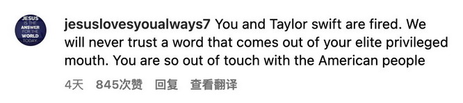 Beyonce.和泰勒?斯威夫特的评论区几乎被美国老百姓的冷嘲热讽攻陷,评论更是红得没边了。“你们这些明星为啥要来干涉政治?”