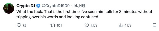 长达.7.分钟的演讲不仅没有出现痴呆和宕机,还红光满面地说出了.“你不能只有在获胜的时候才爱你的国家”.这种高水平金句。美国网友感慨:“很明显我们都知道他那票投给谁了”。