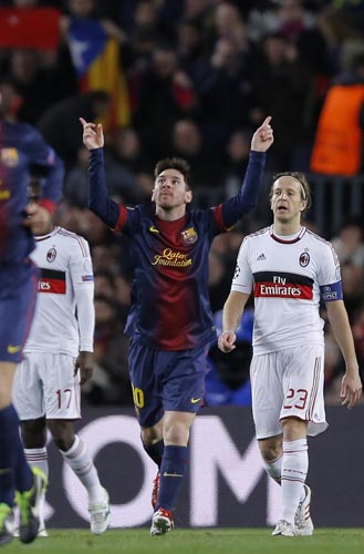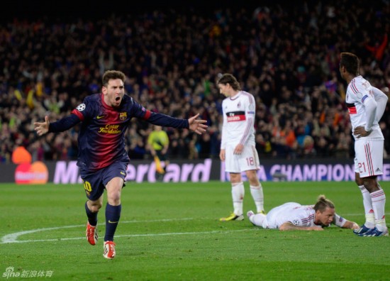 2013年16场正式比赛,梅西打进18球。此役独中两元后,梅西将个人保持的欧冠梅开二度纪录增加到16次,对阵AC米兰攻入5球,仅次于对阵勒沃库森和阿森纳(均入6球),对阵AC米兰进球更多的只有鲁尼(6球),为当之无愧的米兰杀手。